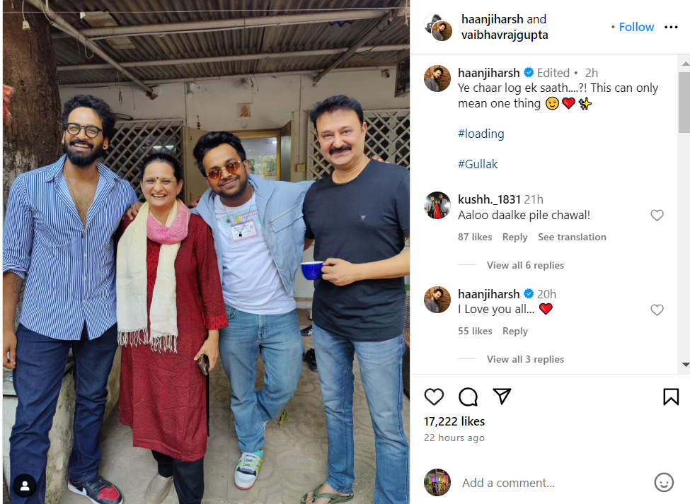 एक्टर ने अपने इंस्टाग्राम पर गुल्लक कास्ट संग फोटो शेयर कैप्शन में लिखा, ये चार लोग एक साथ? इसका केवल एक ही मतलब हो सकता है...#loading ##Gullak। एक्टर के इस पोस्ट से साफ-साफ जाहिर हो चुका है कि जल्द एक बार फिर वह अपना भोले चेहरे के साथ लोगों को मनोरंजन करने आ रहे हैं।