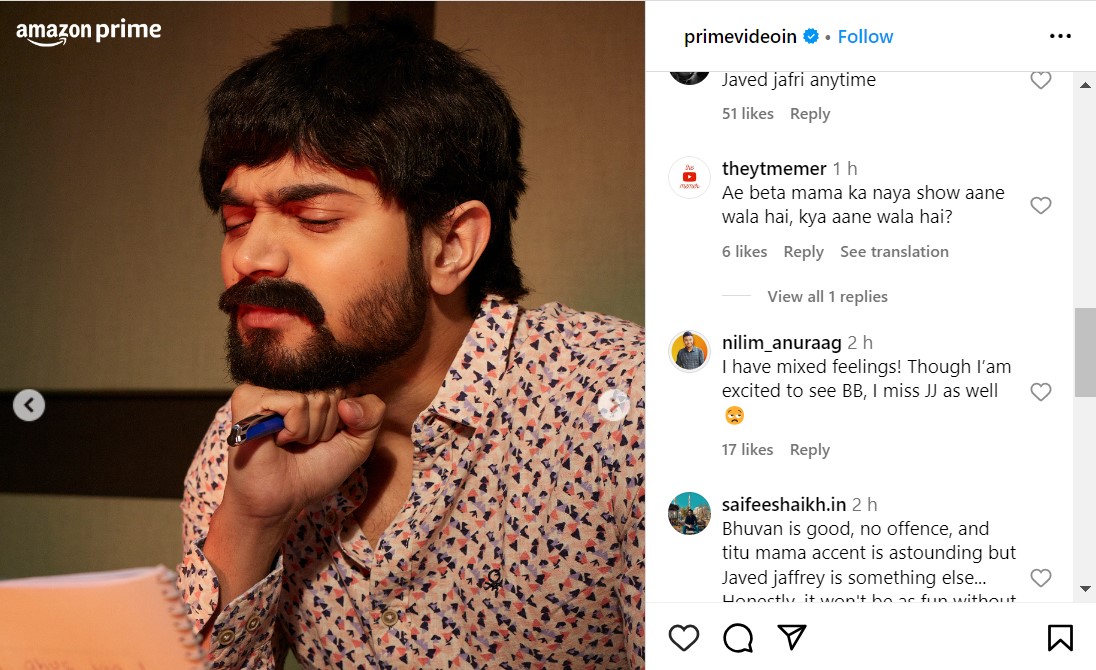 एक अन्य यूजर ने कहा, "जावेद जाफरी दिग्गज है। ये नहीं ह रहा कि भुवन बाम अच्छे नहीं हैं, लेकिन फैंस को अच्छा लगता अगर जावेद जाफरी वापसी करते।"वहीं, कुछ लोगों ने 'ताकेशी कैसल' में बुमन बाम की एंट्री को पसंद भी किया। एक यूजर ने कहा, "मामा जी कैसल में धूम मचा देंगे।"