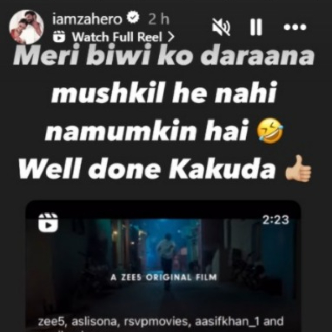 'ककुड़ा' हॉरर-कॉमेडी मूवी है। इसकी कहानी एक ऐसे भूत को लेकर है, जो सिर्फ मर्दों को टारगेट करता है। जहीर इकबाल ने फिल्म का ट्रेलर देख डॉन स्टाइल में सोशल मीडिया पर लिखा, 'मेरी बीवी को डराना मुश्किल ही नहीं, नामुमकिन है।' इस कमेंट पर सोनाक्षी सिन्हा भी रिएक्ट करने से पीछे नहीं रहीं। सोनाक्षी ने जहीर की स्टोरी का स्क्रीनशॉट शेयर कर हार्ट वाली इमोजी बनाई है।