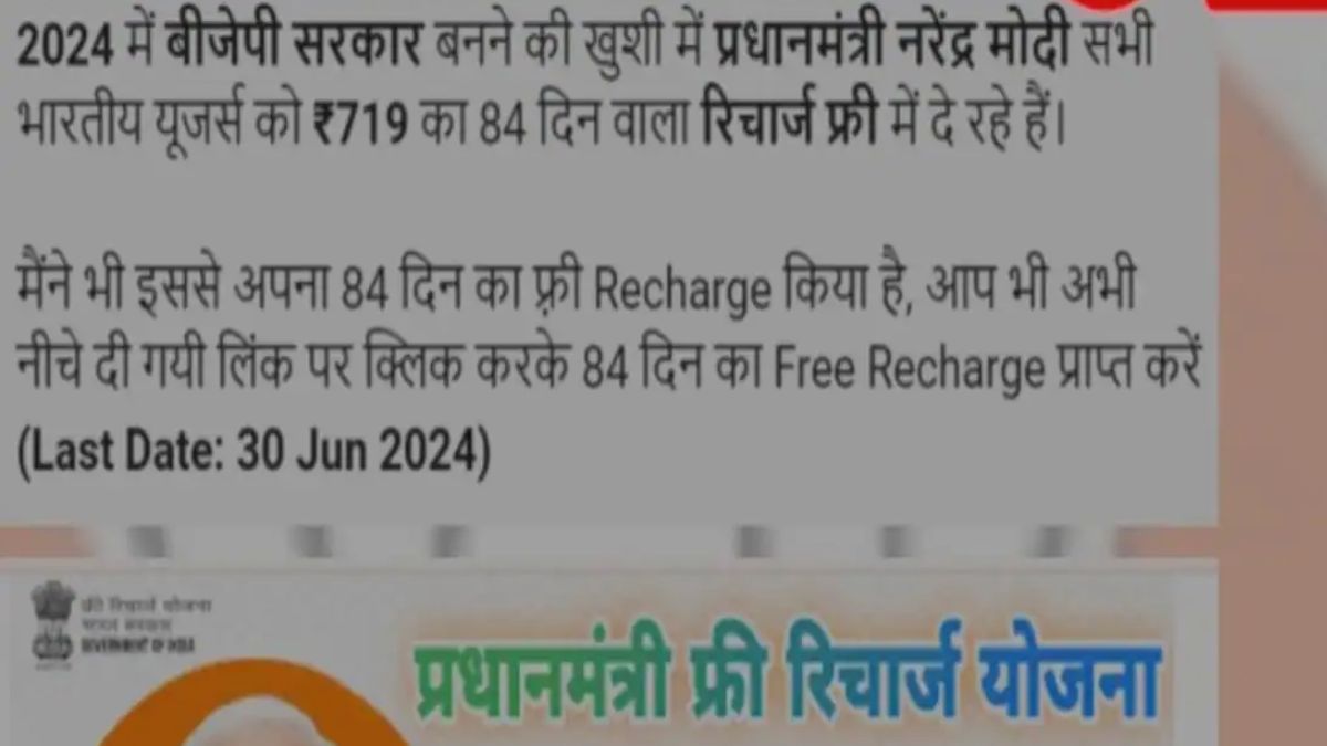 जागरण न्यूज नेटवर्क, नई दिल्ली। लोकसभा चुनाव के परिणाम 4 जून को आ चुके हैं। भाजपा ने 240 सीटें अपने नाम कर ली है। ऐसे में भाजपा की जीत की खुशी में नरेंद्र मोदी सभी भारतीय यूजर्स को ₹719 रुपये का 84 दिन वाला फ्री रिचार्ज दे रहे हैं। यह दावा हमें वाट्सऐप टिप लाइन (9999499044) पर भी प्राप्त हुआ है।