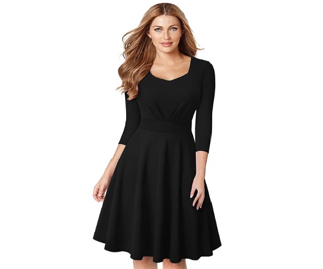 इसमें आपको V नैक और स्लीवलेस पैटर्न मिलता है, जो आपको डेट के लिए परफेक्ट लुक देगी। यह फ्लेयर पैटर्न वाली ड्रेस बहुत सारे साइज ऑप्शन में आ रही है, जिसको आप अपनी साइज के हिसाब से ले सकती हैं। Sheetal Women's Dress Price: Rs 489.
