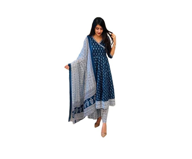 रेयॉन फैब्रिक से बने इस सूट के साथ प्लाज़ो और दुपट्टा सेट मिलता है और सूट काफी सॉफ्ट है साथ ही कैरी करने में काफी आसान है। इसके अलग-अलग साइज के ऑप्शन भी उपलब्ध हैं। सूट का प्रिंट काफी अट्रैक्टिव है। खूबसूरत डिजाइन और आरामदायक फिटिंग के कारण यूज़र्स ने इसे काफी पसंद किया है और अच्छी रेटिंग्स भी दी है।