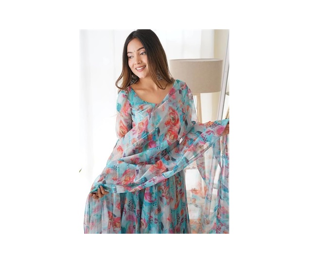 फ्लोरल प्रिंट अनारकली सूट का फैब्रिक जोर्जेट में है और इसके साथ पैंट और दुपट्टा भी दिया गया है। इसके साथ मैचिंग एक्सेसरीज और फुटवेयर स्टाइल करने पर आपको कम्पलीट लुक मिल सकता है। इसे आप कैजुअल, ऑफिस, पार्टी, शादी या और किसी भी ऑकेजन में पहन सकती हैं।