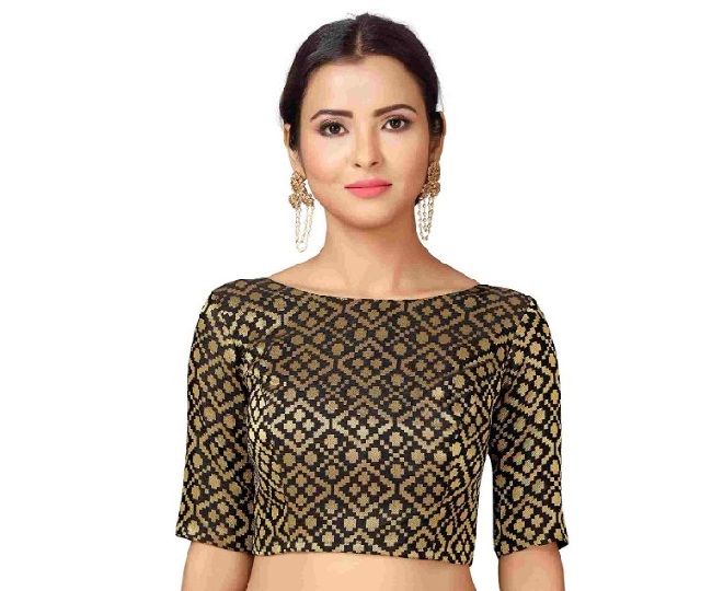 ब्लैक कलर का यह ब्लाउज बहुत ही सुंदर है। इस पर आपको गोल्डन जरी वर्क मिलता है, जिसको आप मैचिंग साड़ी कलर के साथ ट्राई कर सकती हैं।
