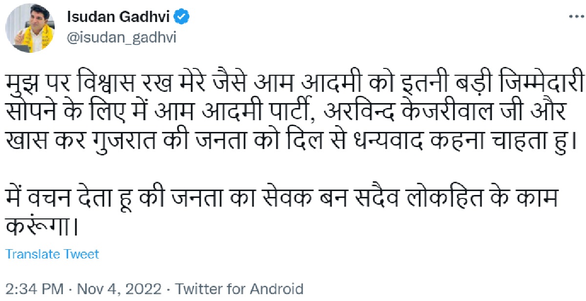 ईसुदान गढ़वी ने किया ट्वीट