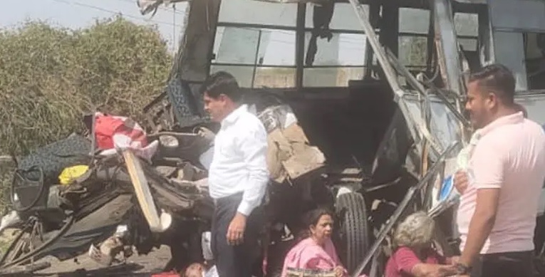 टक्कर इतनी जोरदार थी कि बस के परखच्चे उड़ गए। दुर्घटना में कई लोग घायल हुए जिन्हें इलाज के लिए अस्पताल ले जाया गया है।