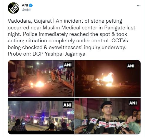 वडोदरा, एजेंसी। गुजरात के वडोदरा (Vadodara, Gujarat) में स्थित पानीगेट ( Panigate) में मुस्लिम मेडिकल सेंटर (Muslim Medical center ) के करीब दीपावली की रात पथराव (stone pelting) की घटना हुई। पुलिस घटना की जानकारी मिलते ही मौके पर पहुंच गई और तुरंत कार्रवाई की।