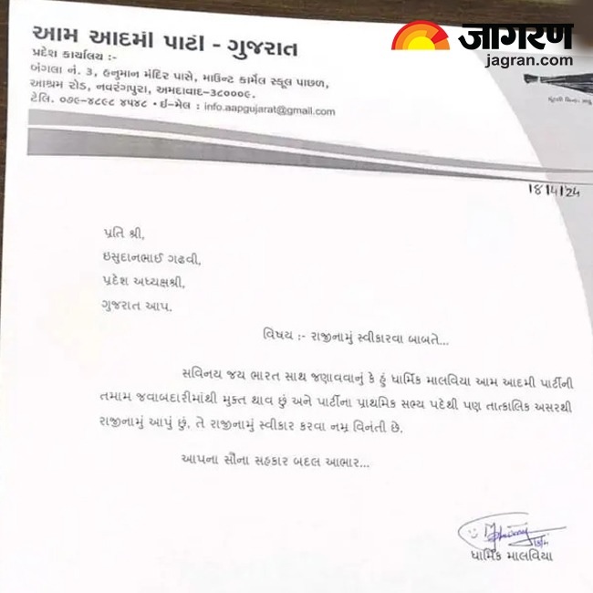 आम आदमी पार्टी को अलविदा कहते हुए दोनों नेताओं ने अपनी-अपनी वजहें भी साझा कीं। धार्मिक मालवीय ने सामाजिक कारणों से इस्तीफा दिया। उन्होंने कहा कि हम काफी समय से सक्रिय नहीं हैं। पार्टी के अच्छे कार्यकर्ताओं को प्राथमिकता मिले। ऐसे में हमने इस्तीफा दे दिया। उन्होंने कहा कि सामाजिक कार्यों में व्यस्त रहने की वजह से हम राजनीतिक कार्यों में मदद नहीं कर पा रहे थे। ऐसे में यह निर्णय लिया।