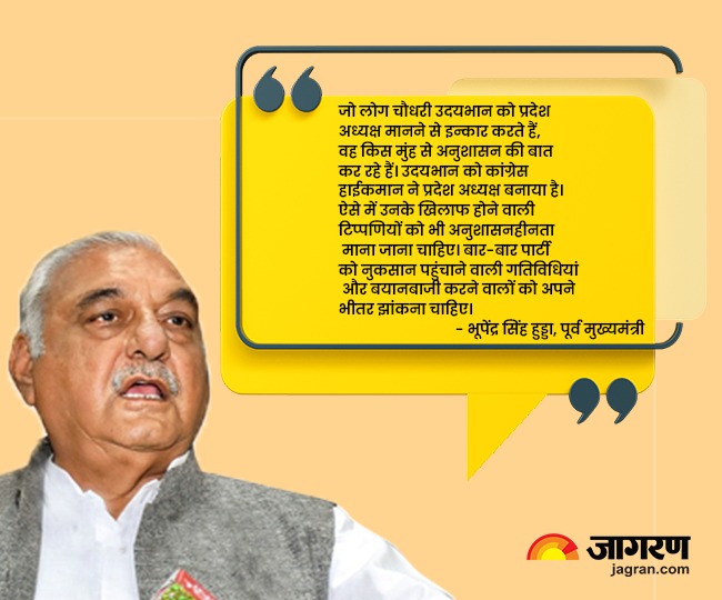 इसी मामले को लेकर अब भूपेंद्र हुड्डा (Bhupinder Hooda) ने इतने दिनों बाद अपनी भड़ास निकाली। हुड्डा ने किरण चौधरी के सामन कहा, "जो लोग चौधरी उदयभान को प्रदेश अध्यक्ष मानने से इन्कार करते हैं, वह किस मुंह से अनुशासन की बात कर रहे हैं। उदयभान को कांग्रेस हाईकमान ने प्रदेश अध्यक्ष बनाया है। ऐसे में उनके खिलाफ होने वाली टिप्पणियों को भी अनुशासनहीनता माना जाना चाहिए।" हुड्डा ने ये भी कहा कि बार-बार पार्टी को नुकसान पहुंचाने वाली गतिविधियां और बयानबाजी करने वालों को अपने भीतर झांकना चाहिए।