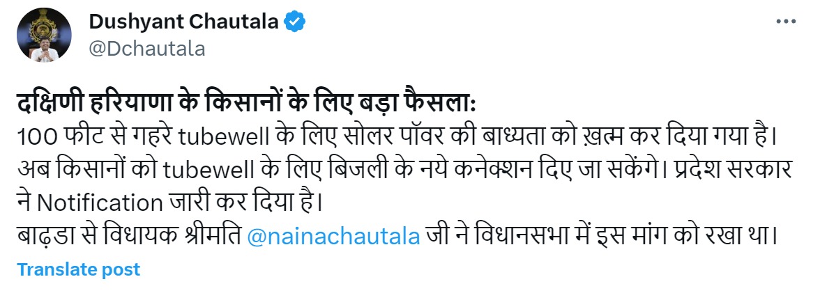 Haryana: चाचा ससुर ने मानी बहू नैना चौटाला की बात, अब किसानों को ट्यूबवेल के लिए मिलेंगे बिजली के नए कनेक्शन
