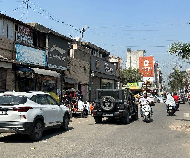 अंबाला कैंट के राय मार्केट में सड़क किनारे खड़े वाहन। (फोटो- जागरण)