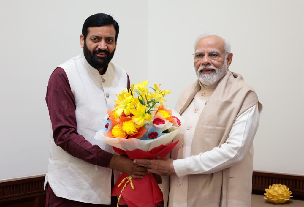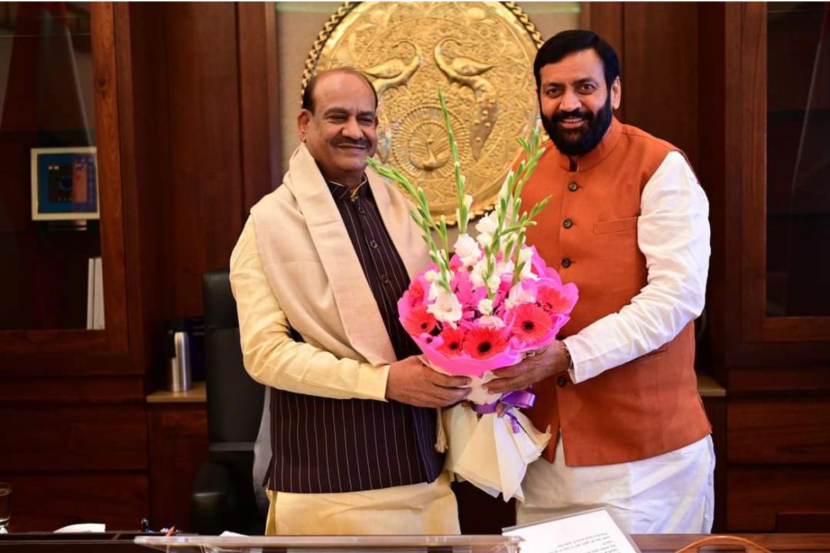 लोकसभा स्पीकर ओम बिड़ला के साथ कुरुक्षेत्र सांसद और नव चयनित हरियाणा सीएम नायब सैनी।