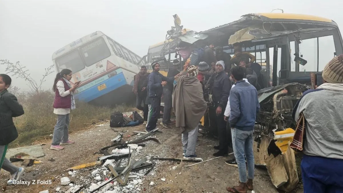 Bhiwani Bus Accident: रोडवेज और स्कूल बस के बीच टक्कर। फोटो जागरण