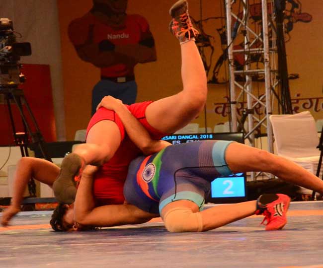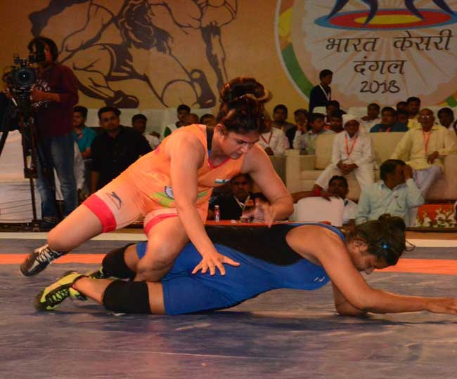 भिवानी में आयोजित एक करोड़ी भारत केसरी दंगल में बड़ा उलटफेर हुआ। रेलवे की रितु मलिक ने गीता फौगाट को सेमीफाइनल में हरा दिया।