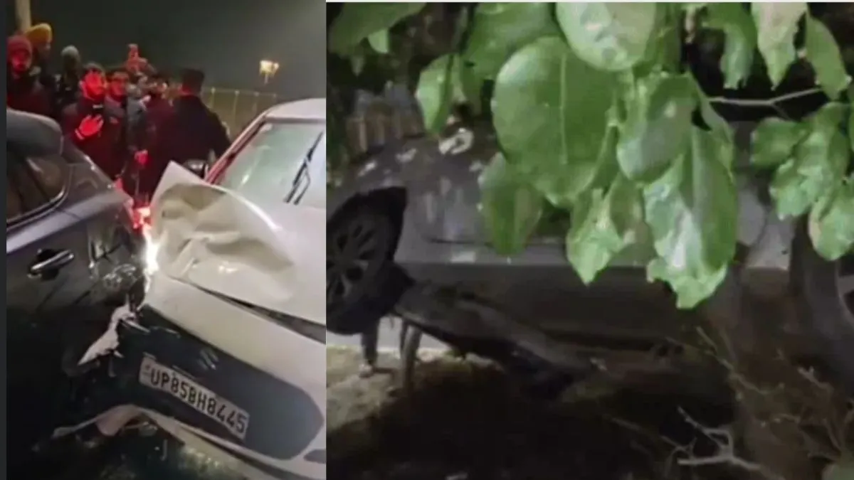 फरीदाबाद में दिल्ली-मथुरा हाईवे पर एक साथ डबल हादसा, डिवाइडर और पेड़ों के बीच फंसी कार; बाल-बाल बचे ड्राइवर