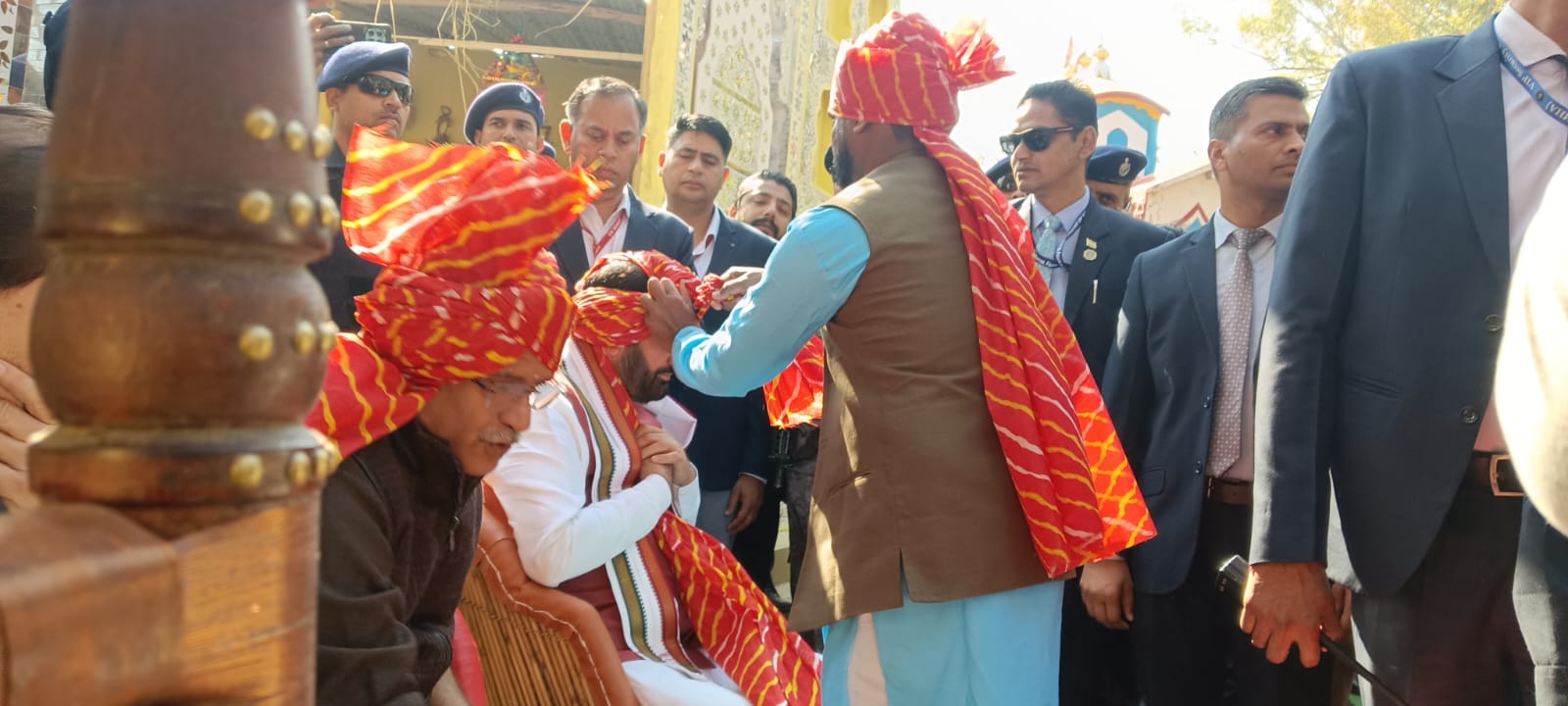 बताया गया कि हरियाणा के केंद्रीय पर्यटन मंत्री गजेंद्र शेखावत के बाद मुख्यमंत्री नायब सिंह सैनी को पगड़ी बांधी गई। इस दौरान मुख्यमंत्री नायब सिंह सैनी और केंद्रीय पर्यटन मंत्री गजेंद्र सिंह शेखावत ने सूरजकुंड इंटरनेशनल मेला प्रांगण में भ्रमण किया।
