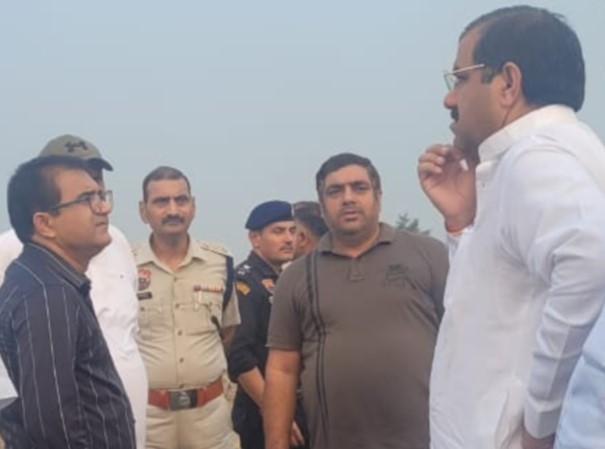 फरीदाबाद-पलवल बॉर्डर पर गदपुरी टोल प्लाजा के पास प्रधानमंत्री नरेन्द्र मोदी की पहली अक्टूबर को होने वाली रैली के आयोजन को लेकर पलवल के उपायुक्त डा. हरीश कुमार, पुलिस अधीक्षक चंद्रमोहन के साथ चर्चा करते मैदान को देखते हुए मुख्यमंत्री के निवर्तमान राजनीतिक सचिव व व्यवस्था संयोजक अजय गौड़। सौ.मीडिया प्रभारी भाजपा।