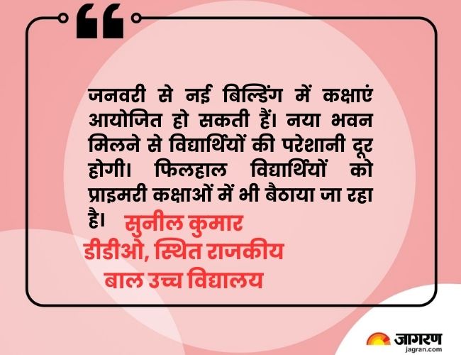विद्यालय में भवन निर्माण कार्य चल रहा है। दरवाजे, खिड़कियां और बिजली की लाइन जोड़ने का काम रह गया है। जनवरी से नई बिल्डिंग में कक्षाएं आयोजित हो सकती हैं। नया भवन मिलने से विद्यार्थियों की परेशानी दूर होगी। फिलहाल विद्यार्थियों को प्राइमरी कक्षाओं में भी बैठाया जा रहा है। - सुनील कुमार, डीडीओ, स्थित राजकीय बाल उच्च विद्यालय