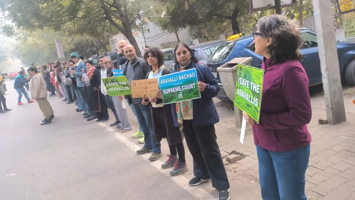 अरावली की पहाड़ी को बचाने के लिए सड़क पर उतरे लोग, वन मंत्री के आवास के बाहर किया प्रदर्शन