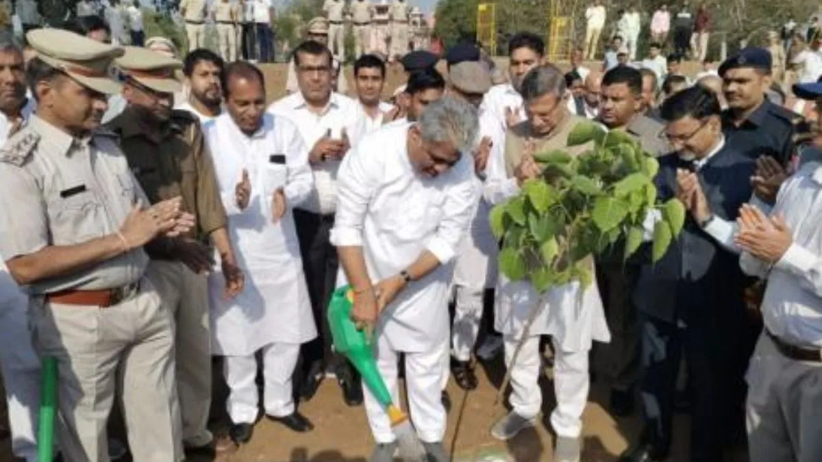 गांव टीकली में पौधे लगाकर अरावली ग्रीन वाल प्रोजेक्ट का शुभारंभ करते केंद्रीय वन एवं पर्यावरण मंत्री भूपेंद्र यादव। जागरण आर्काइव