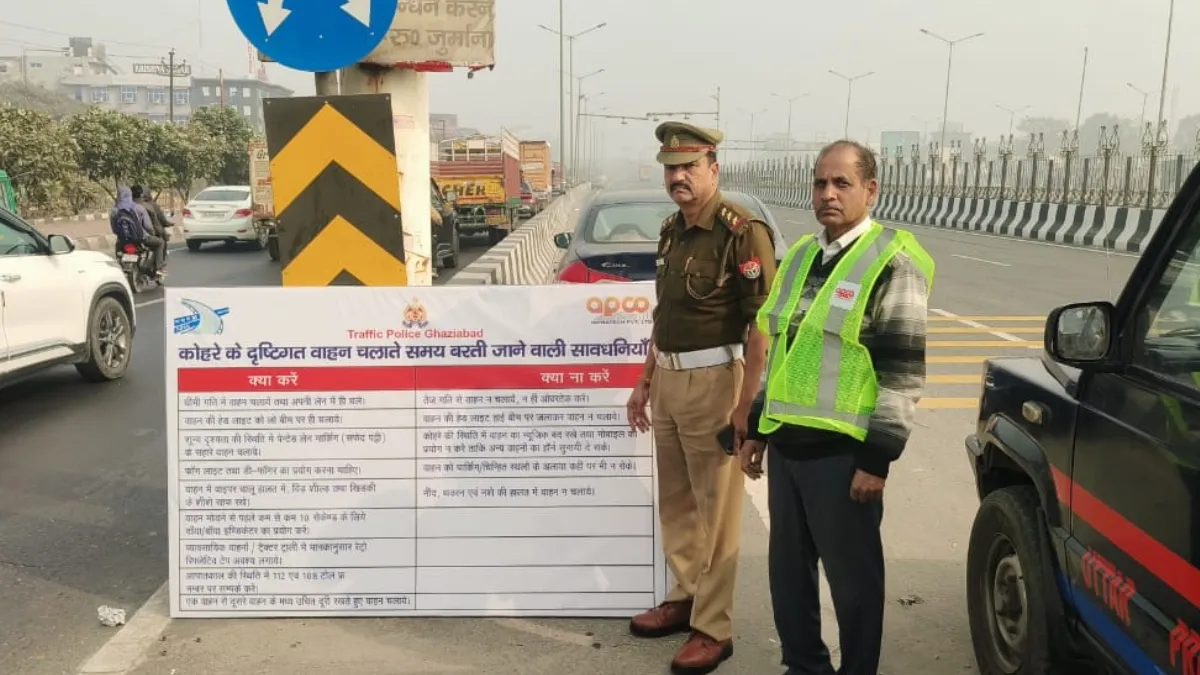गाजियाबाद में कोहरे से बचाव की जानकारी देने के लिए पुलिस ने डीएमई पर लगवाए बोर्ड