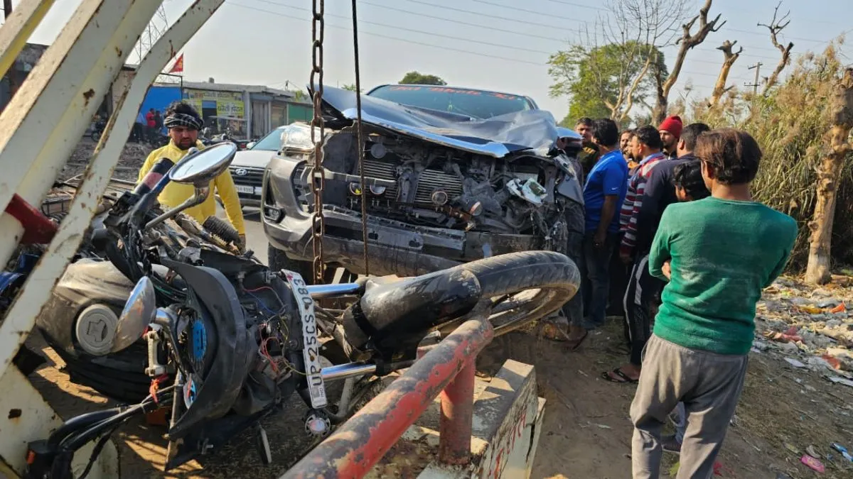 गुरुग्राम के पटौदी पुलिस स्टेशन इलाके में ऊंचा माजरा गांव के पास एक टोयोटा हिलक्स ने एक मोटरसाइकिल को टक्कर मार दी। जागरण