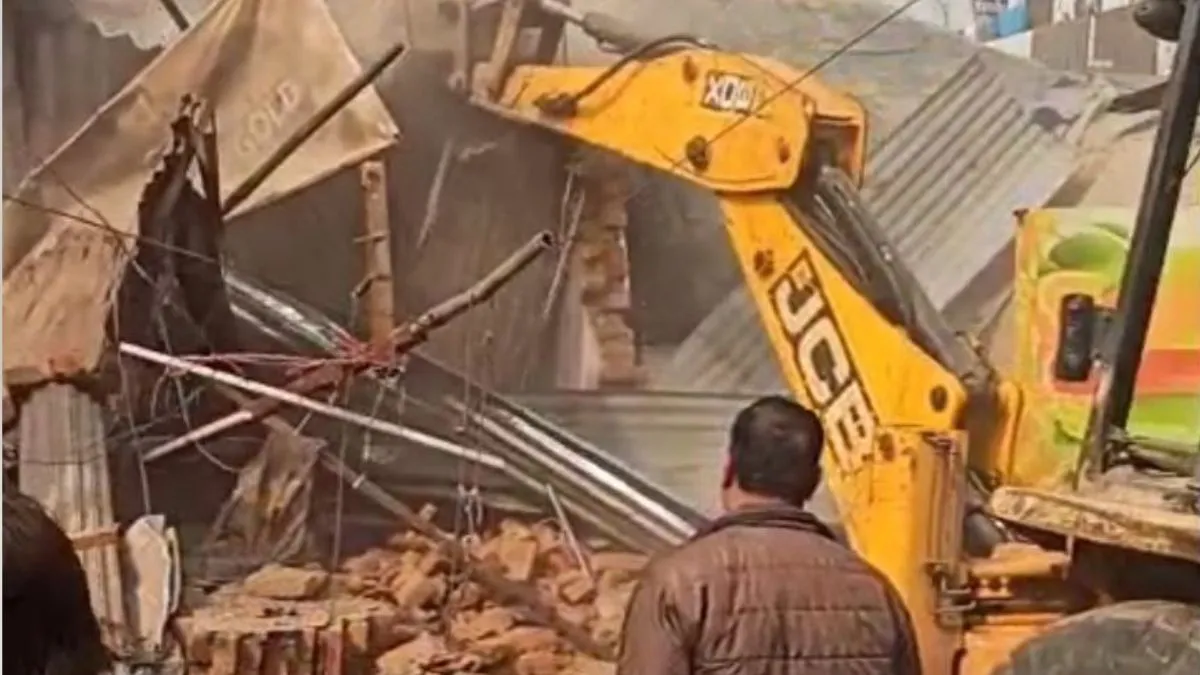 अपराधियों द्वारा कब्जा कर बनाई गई दुकानों को ध्वस्त करती पुलिस। जागरण आर्काइव