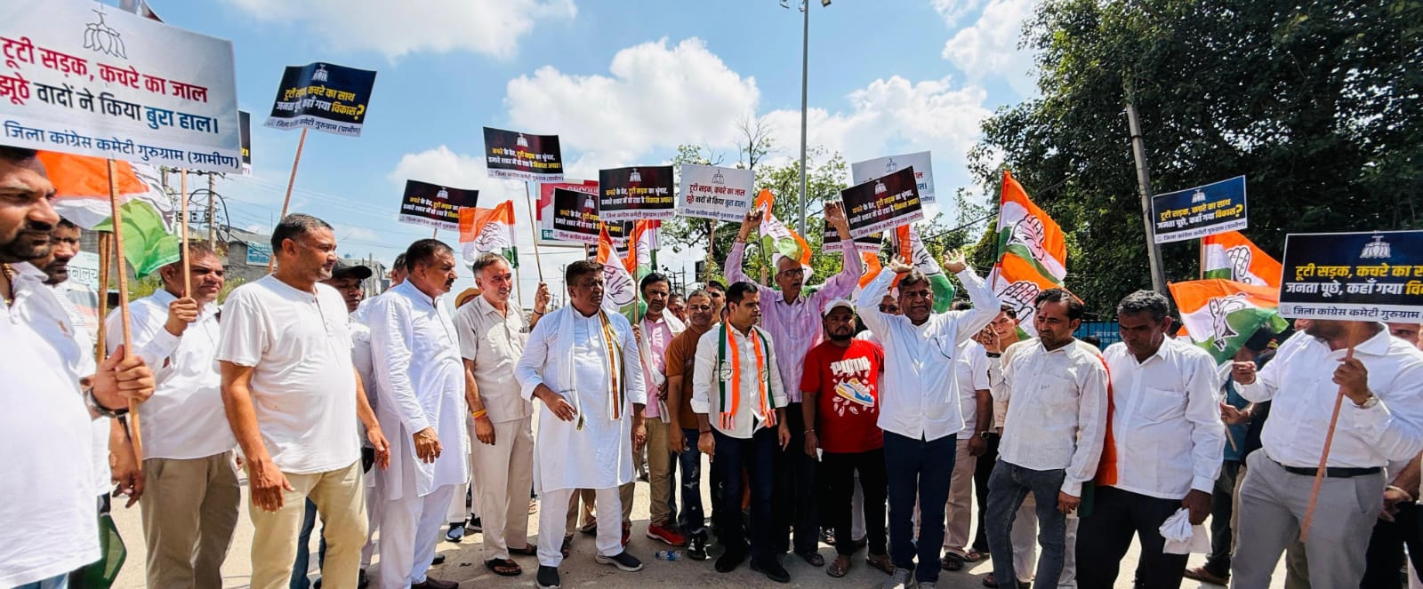 गुरुग्राम में कांग्रेस पार्टी 11 साल से खोई जमीन पाने के लिए सक्रिय है। शहरी जिलाध्यक्ष पंकज डावर ने सूरत नगर में जलभराव के मुद्दे पर सरकार को घेरा। ग्रामीण जिलाध्यक्ष वर्धन यादव ने पटौदी में जर्जर सड़कों और जनविरोधी नीतियों के खिलाफ हल्ला बोल किया। उन्होंने डंपिंग स्टेशन बनाने की योजना का भी विरोध किया और मुआवजे की मांग की।