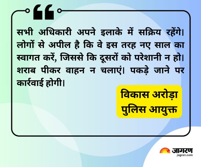 68 नाकों के माध्यम से संदिग्धों के ऊपर नजर रखी जाएगी। पुलिस आयुक्त विकास अरोड़ा का कहना है कि सभी अधिकारी अपने इलाके में सक्रिय रहेंगे। लोगों से अपील है कि वे इस तरह नए साल का स्वागत करें, जिससे कि दूसरों को परेशानी न हो। शराब पीकर वाहन न चलाएं। पकड़े जाने पर कार्रवाई होगी।