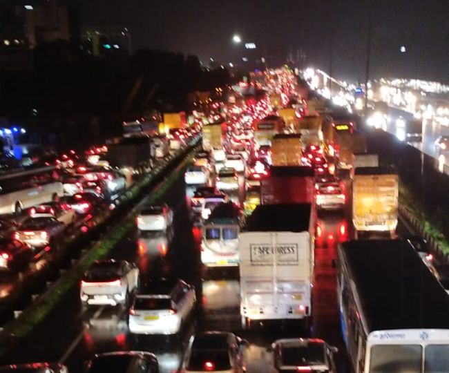 दिल्ली-गुरुग्राम एक्सप्रेसवे पर नरसिंहपुर से रजोकरी बॉर्डर तक 15 किमी लंबा 'महाजाम', बारिश से हाहाकार