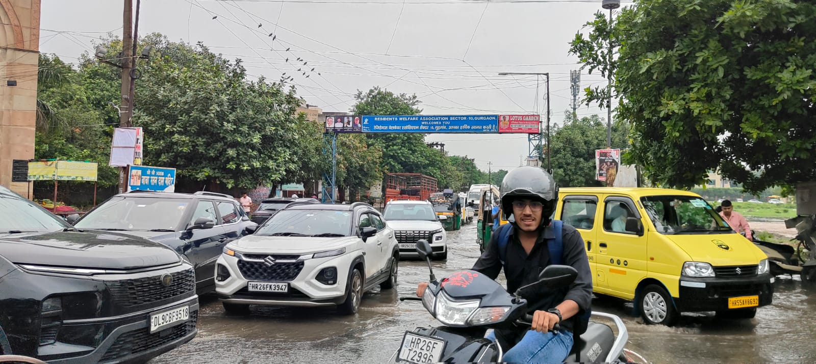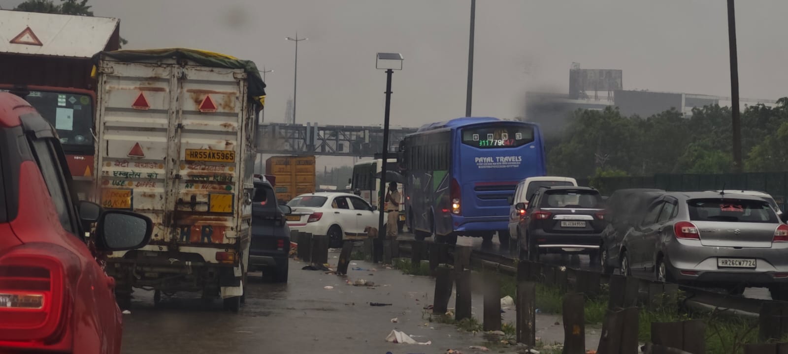 गुरुग्राम में सुबह से झमाझम बारिश, दिल्ली-जयपुर हाईवे पर लगा जाम; जलभराव से कई सड़कों पर थमी वाहनों की रफ्तार