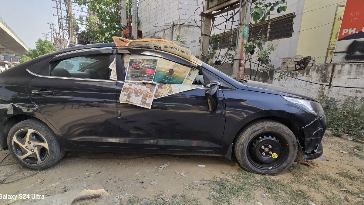 पुलिस थाना परिसर में खड़ी वरना कार। इसी कार से हुआ था हादसा। सौ. पुलिस