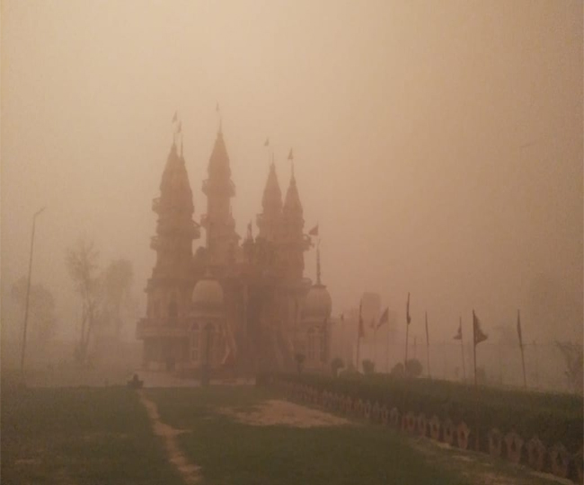 सिवानी में तूफान के कारण धुंधला दिख रहा मंदिर का दृश्य