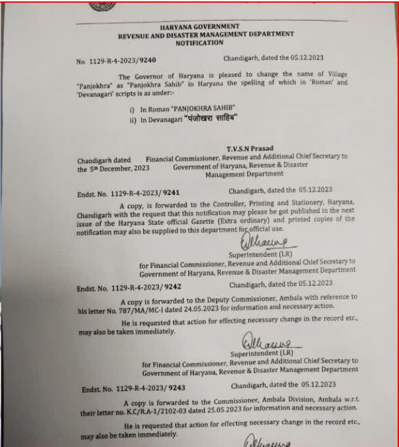 Haryana: ‘पंजोखरा साहिब’ से जाना जाएगा अंबाला का यह गांव, हरियाणा सरकार का बड़ा फैसला; इस वजह से किया बदलाव