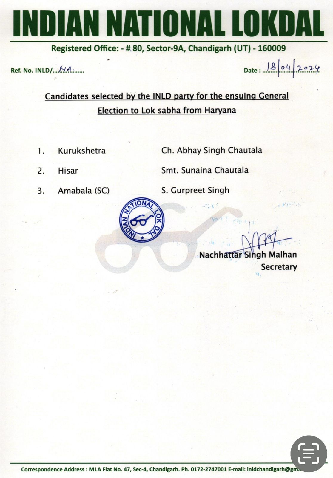 INLD Candidates List Release: इनेलो की पहली सूची जारी, तीन सीटों पर उम्मीदवारों की घोषणा, ससुर; जेठानी-देवरानी में टक्कर