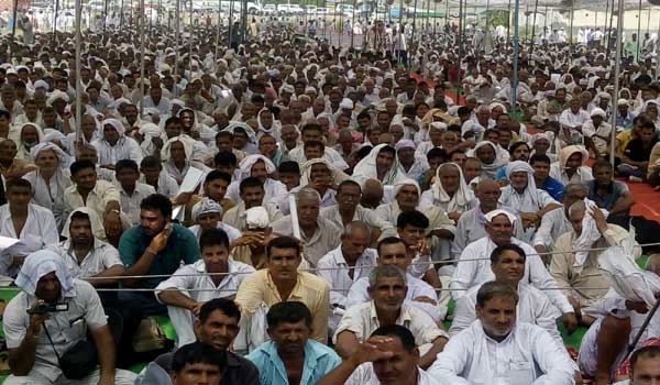 हिसार में जाटों की महापंचायत में मौजूद लोग।