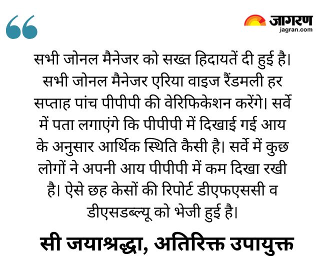 अब सरकार की ओर से पीपीपी की वेरिफिकेशन शुरू हो चुकी है। प्राथमिक जांच सर्वे में पाया है कि किसी का दो मंजिला मकान है, तो किसी के घर में महंगा पालतू कुत्ता भी है। अगर पीपीपी में आय की बात करें तो 1.80 लाख रुपये से कम दिखा रखी है।