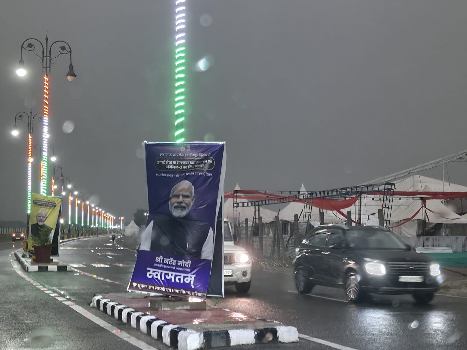 हिसार में पीएम नरेन्द्र मोदी की रैली के लिए लगाया गया पंडाल आंधी में टूट कर गिर गया। पिलर पर सिर्फ पंखे लटके रह गए। प्रधानमंत्री 14 अप्रैल को हिसार एयरपोर्ट का उद्घाटन करने के लिए आएंगे। वह हिसार-अयोध्या की फ्लाइट को हरी झंडी दिखाएंगे। कार्यक्रम में करीब 25 से 30 हजार लोगों के बैठने की व्यवस्था की जा रही है।