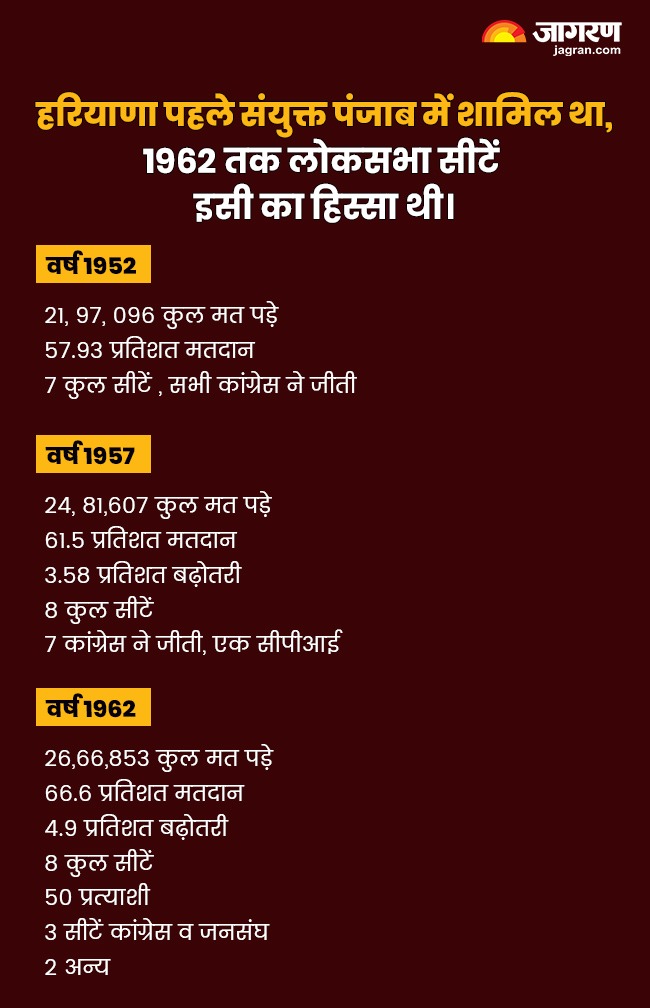हरियाणा पहले संयुक्त पंजाब में शामिल था, 1962 तक लोकसभा सीटें इसी का हिस्सा थी।