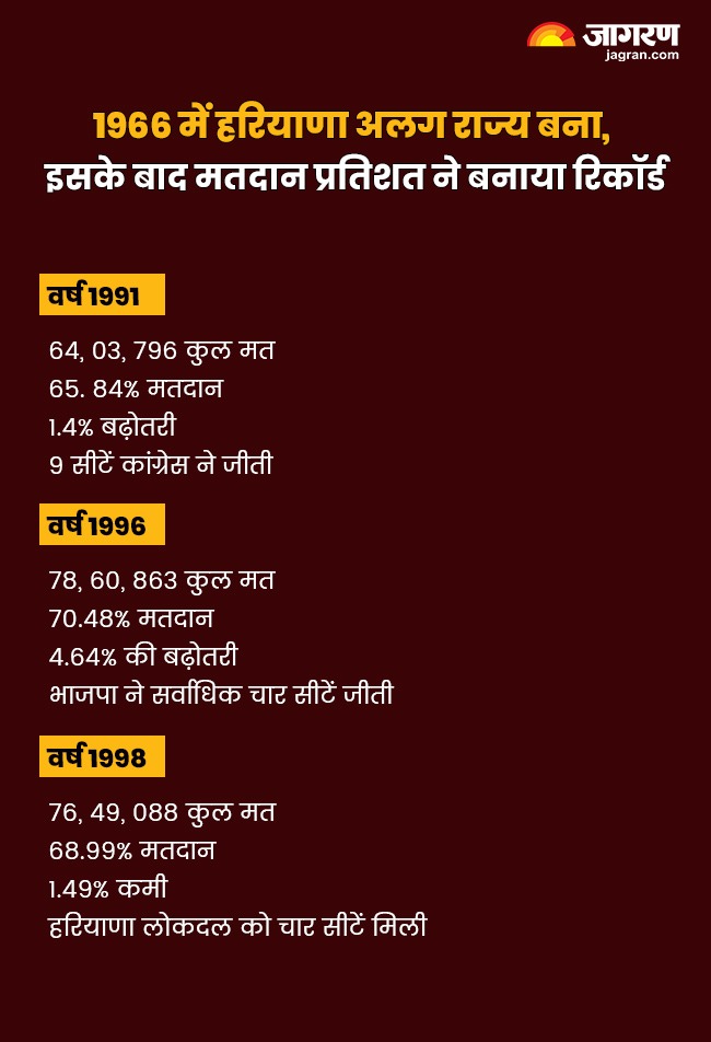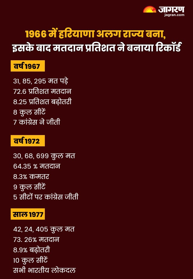 1966 में हरियाणा अलग राज्य बना, इसके बाद मतदान प्रतिशत ने कई रिकॉर्ड बनाए। लोगों ने मतदान की ओर काफी जागरुकता दिखाई।