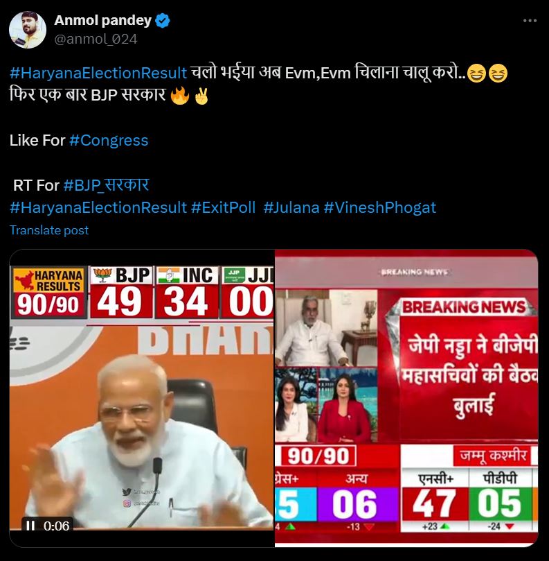 एक अन्य यूजर ने लिखा हरियाणा चुनाव परिणाम चलो भईया अब Evm,Evm चिलाना चालू करो। फिर एक बार BJP सरकार। दूसरे यूजर ने लिखा कि मानो या मत मानो इस बार फिर भाजपा सरकार। इससे इतर तीसरे यूजर ने कहा कि आम आदमी पार्टी की कविता दलाल से टक्कर नहीं होती नजर आ रही।