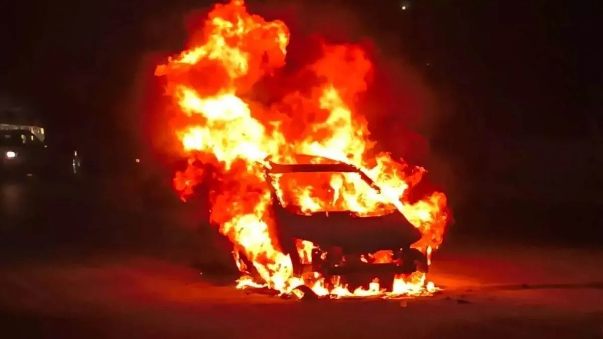 चंडीगढ़-हिसार हाईवे पर चलती क्रेटा में लगी आग, बाल-बाल बचे तीन यात्री; जलकर खाक हुई गाड़ी