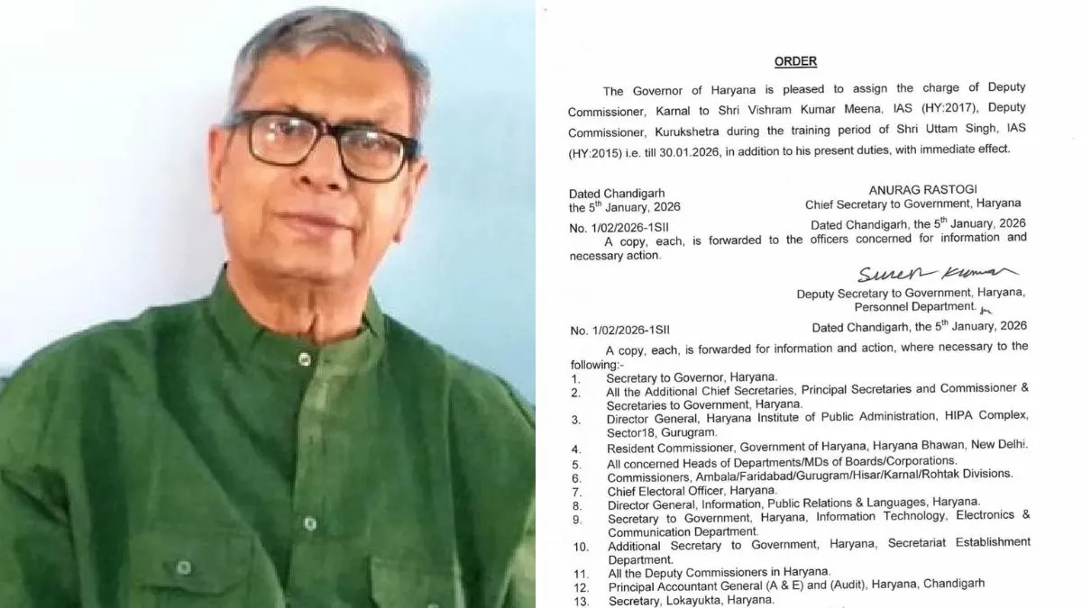 कुरुक्षेत्र के डिप्टी कमिश्नर विश्राम मीणा को मिला करनाल का अतिरिक्त प्रभार, राज्यपाल ने जारी किया आदेश