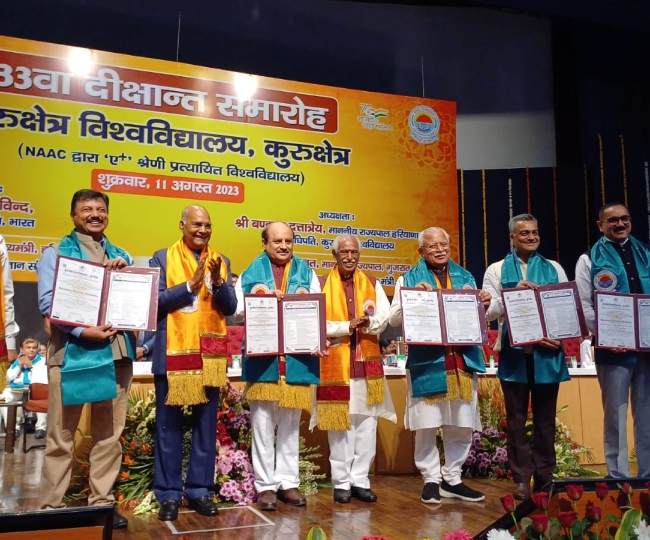 कुरुक्षेत्र विश्वविद्यालय का 33वां दीक्षांत समारोह: CM खट्टर को जापानी भाषा में कोर्स करने पर मिला सम्मान