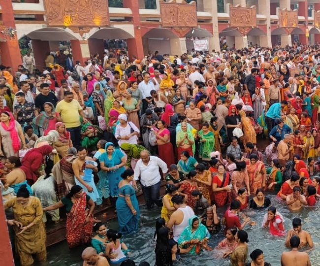 Surya Grahan photos & video: ब्रह्मसरोवर में श्रद्धालुओं ने लगाई आस्था की डुबकी, मंत्रों के गूंजा वातावरण