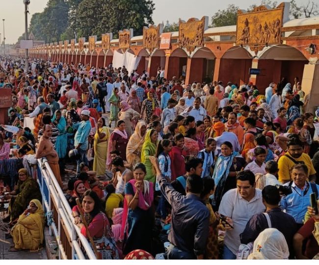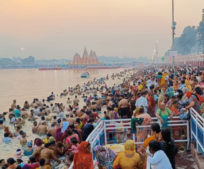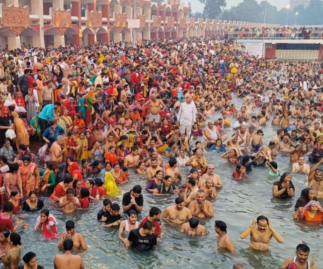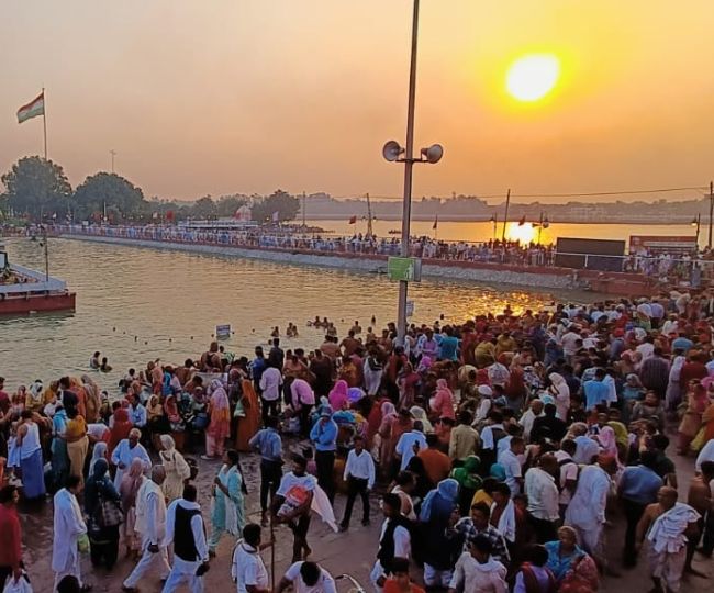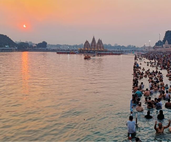 शाम को जैसे ही सूर्यग्रहण हुआ श्रद्धालु उत्साहित हो गए। हर कोई सूर्य भगवान को नमस्कार कर डुबकी लगाने लगा।
