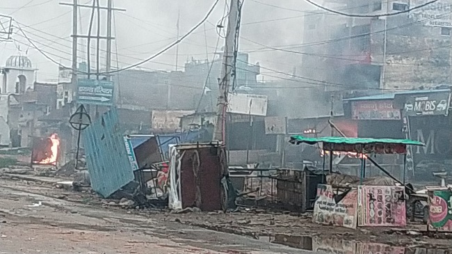 जिस घर से हो रहा था पथराव, सिलिंडर डालकर लगाई आग कुछ लोगों ने जिन दो घरों से पथराव हो रहा था, उन घरों में सिलिंडर में आग लगाकर फेंक दिया। इससे दोनों घरों में आग लग गई। इस दौरान घरों में रहने वाले लोगों ने भागकर जान बचाई। रात सात बजे दोनों पक्ष बाईपास पर आमने सामने आ गए। दोनों तरफ से भारी पथराव हुआ।