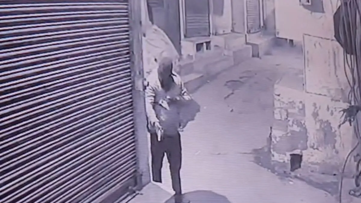 नकाबपोश बदमाश शटर के ताले को तोड़ते हुए सीसीटीवी कैमरे में हुआ कैद। जागरण
