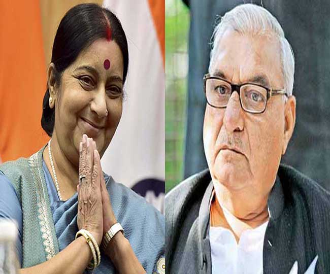 विदेश मंत्री सुषमा स्वराज और पूर्व मुख्यमंत्री भूपेंद्र सिंह हुड्डा।