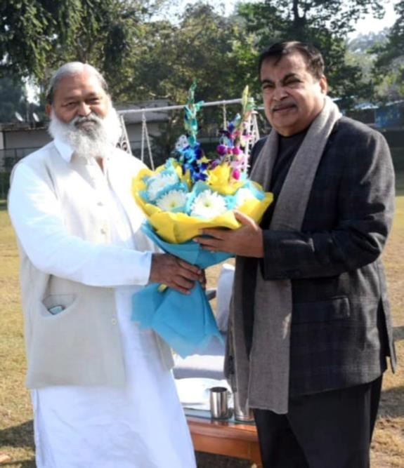 नितिन गडकरी के साथ मुलाकात करते अनिल विज।